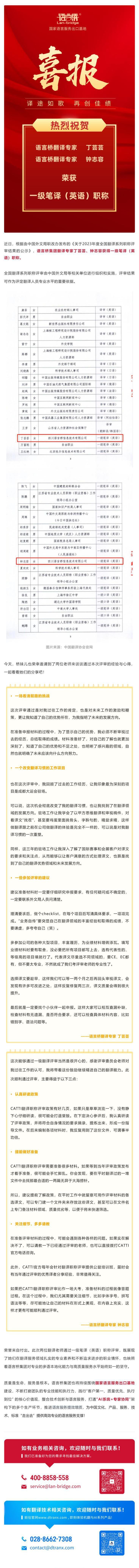 祝賀!語言橋翻譯專家通過全國一級筆譯評審