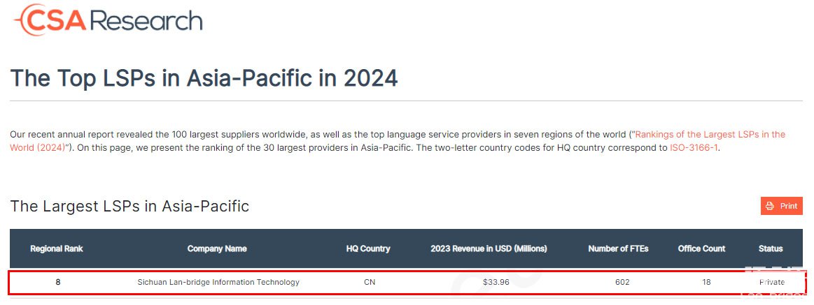 語言橋2024 CSA亞太地區(qū)排名