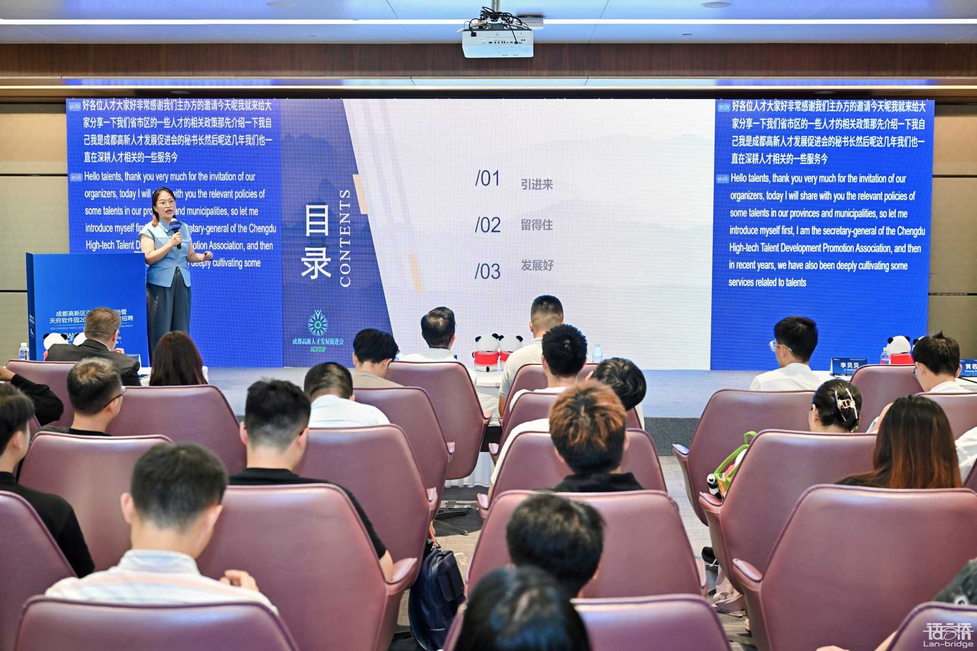 7月24日,2025成都天府軟件園國際人才招聘會在中國-歐洲中心圓滿舉辦。作為深耕語言服務與跨文化交流的領軍企業,語言橋受邀參與本次招聘會,與20余家名企共同搭建國際人才對接平臺,重點關注海外人才職業發展需求,并通過自主研發的“數譯AI同傳”技術為招聘會提供實時語言支持,助力跨語言溝通無縫銜接。